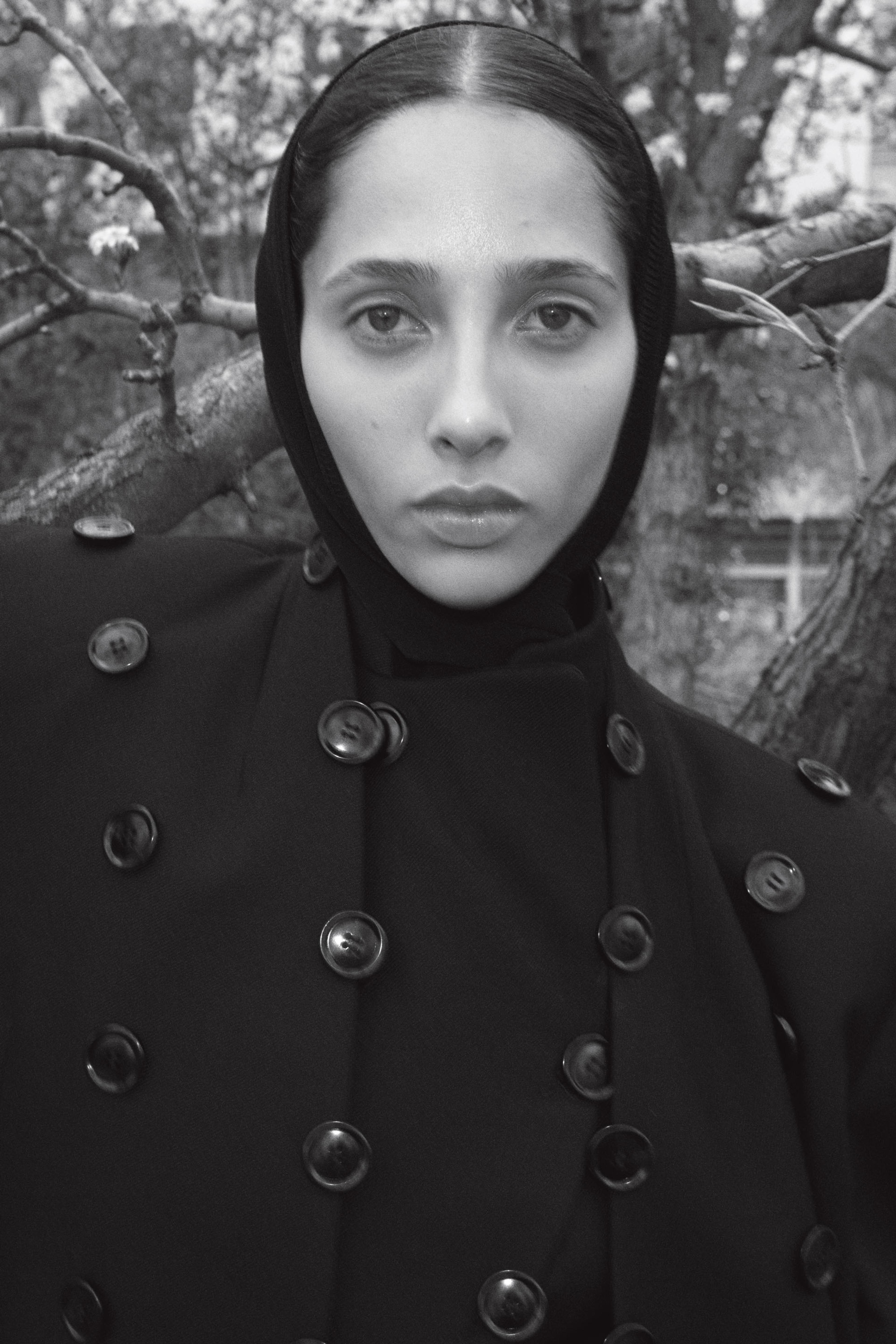 Black chiffon scarf by MUGLER. Black tights by SIMONE WILD.